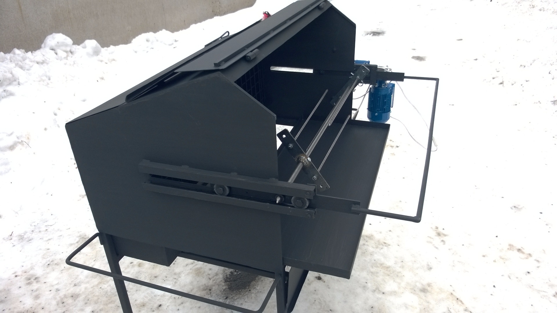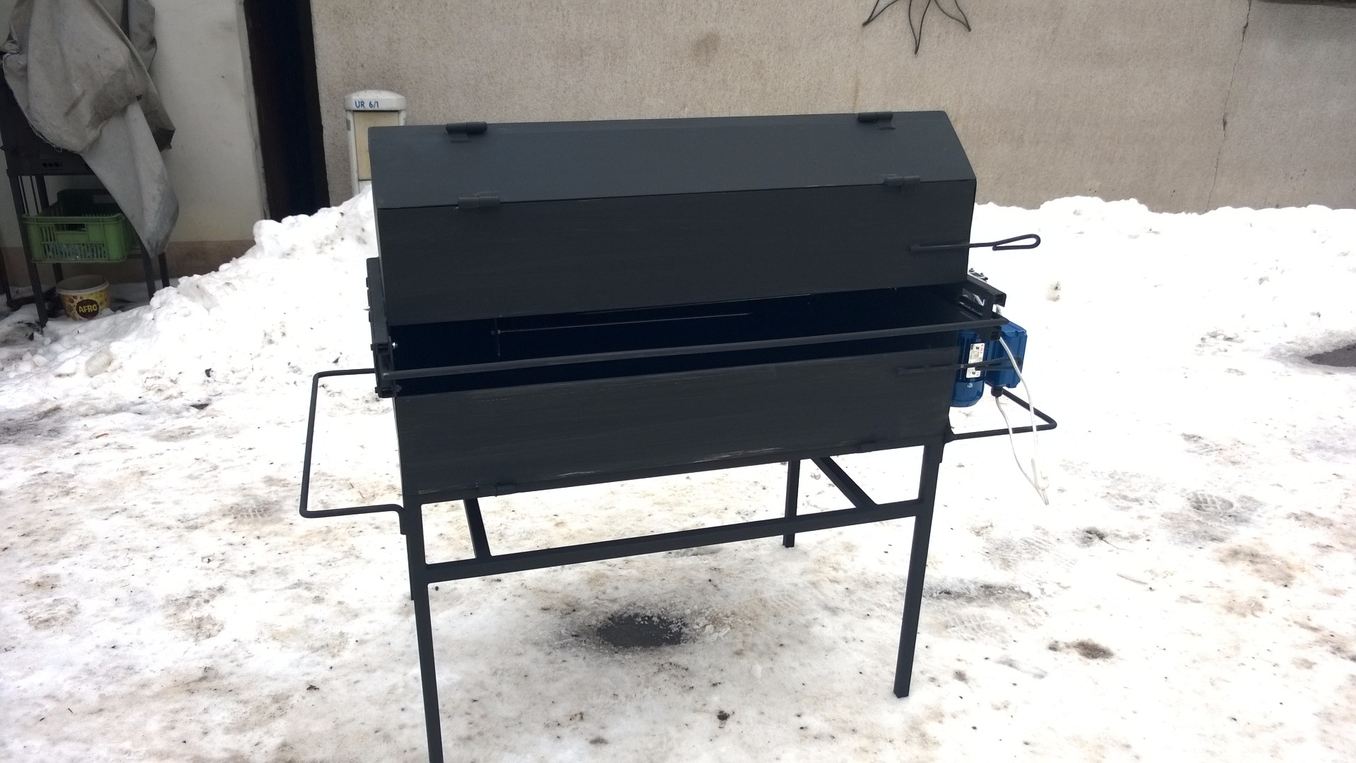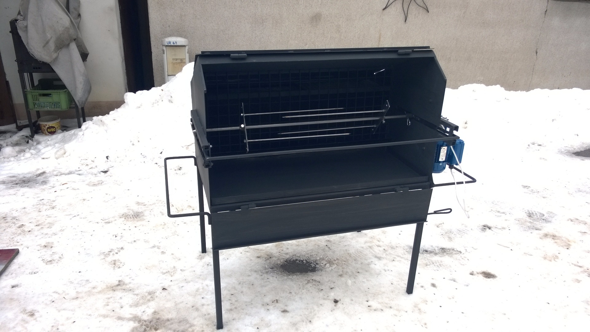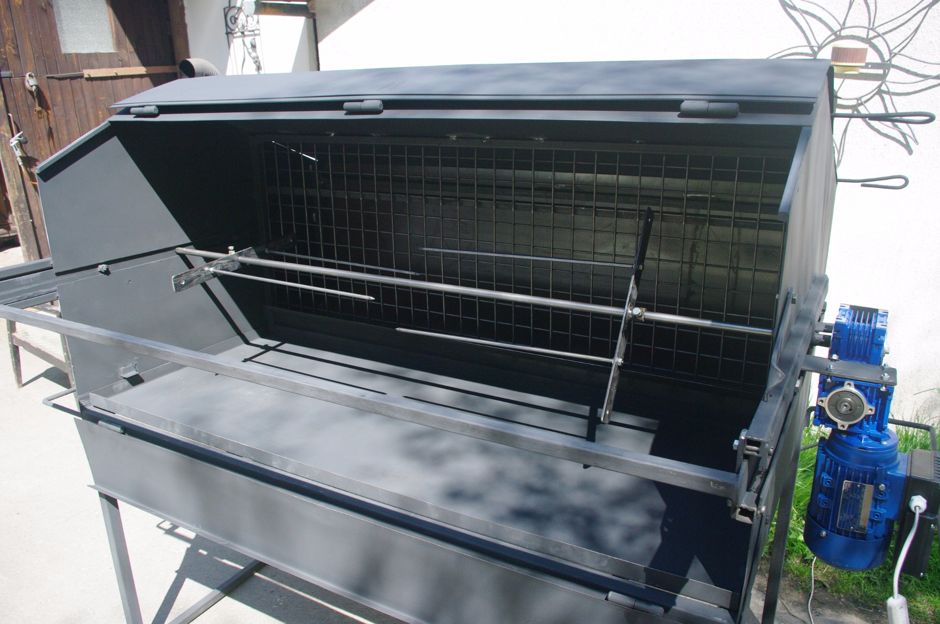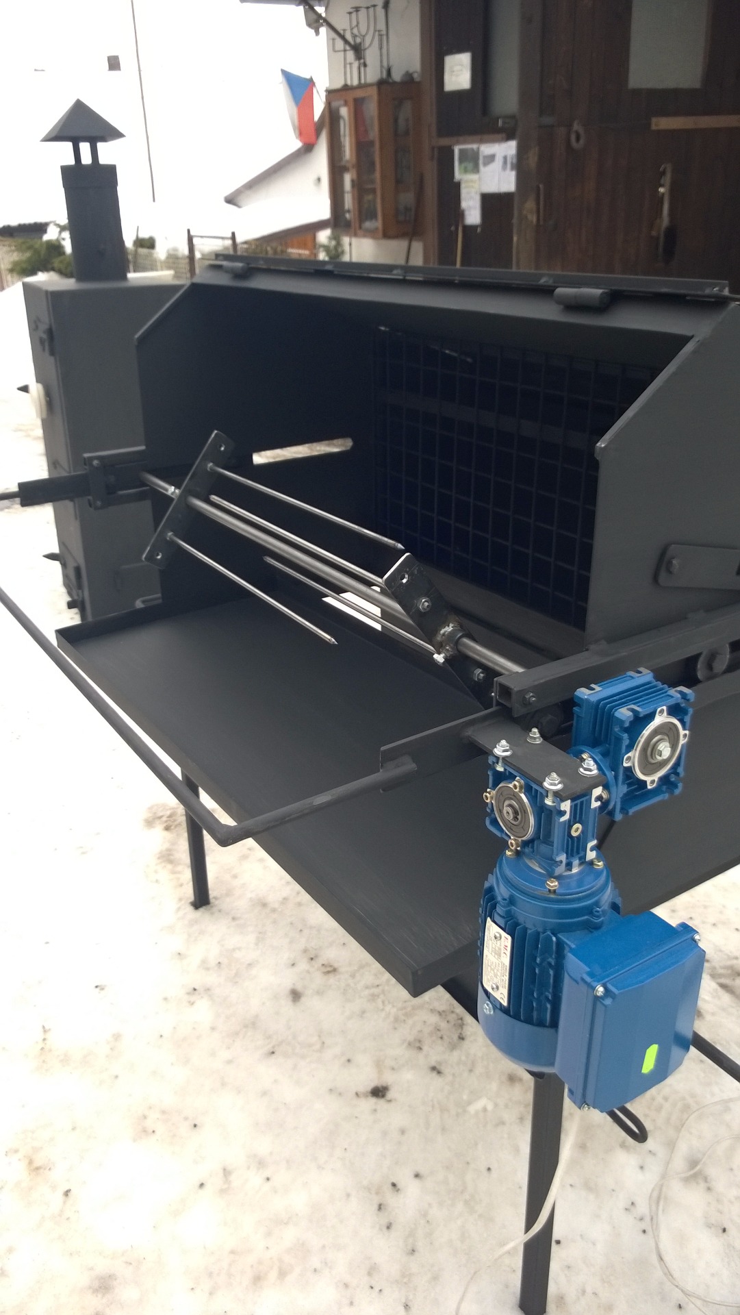 Tento gril je osazen spolehlivým motorem se šnekovou převodovkou.